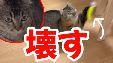 百均グッズで猫おもちゃを自作して遊んだら…壊れる、寝る、逃げる!? – ねこチャックの日常