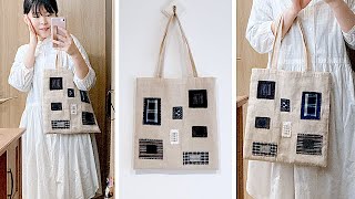 100均のトートバッグをリメイク 古布はぎれ活用 diy japanese boro fabric scrap bag 着物リメイク kimono| 時。 – 時。